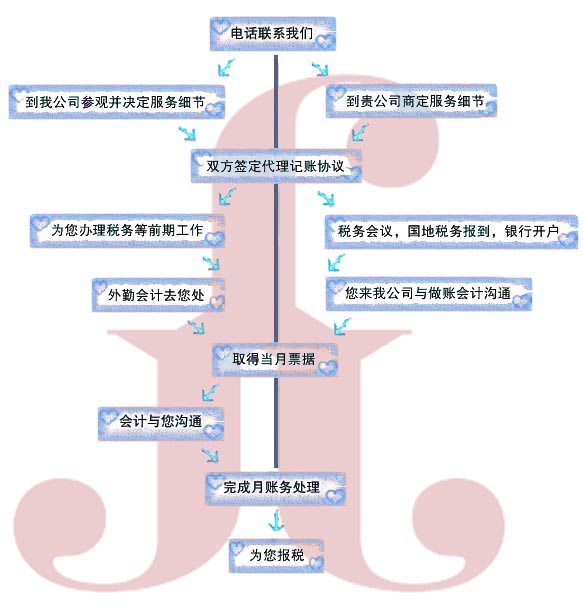 1、接受委托、簽訂財(cái)務(wù)外包代理記賬合同,確定服務(wù)項(xiàng)目及費(fèi)用。
